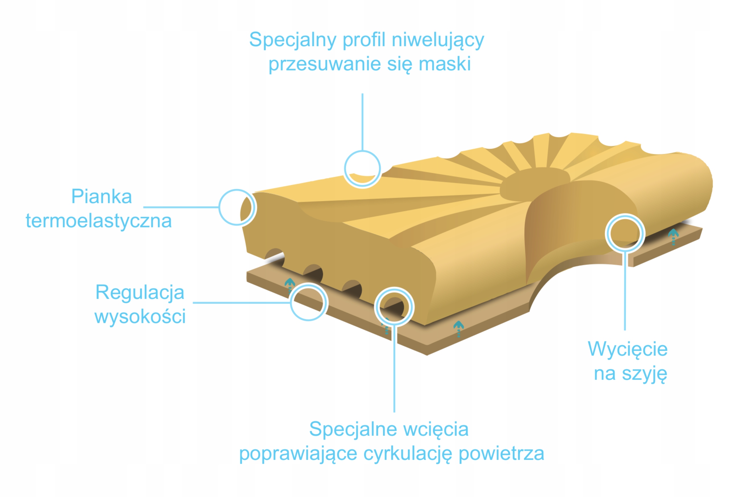Poduszka ortopedyczna do terapii CPAP z pianki z pamięcią