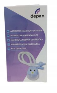 Aspirator manualny do nosa Depan to wyrób medyczny zaprojektowany do odświeżania i udrażniania noska dziecka. Działa poprzez delikatne ssanie powietrza przez ustnik, co umożliwia bezpieczne wyciągnięcie kataru bez dyskomfortu. Umożliwia stosowanie od pierwszego dnia życia.