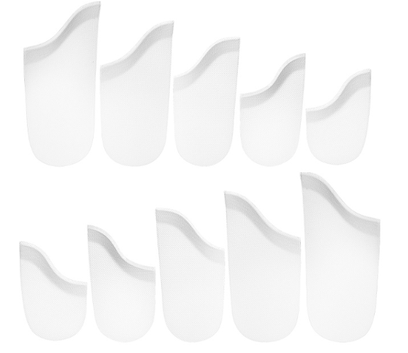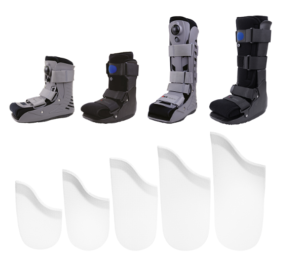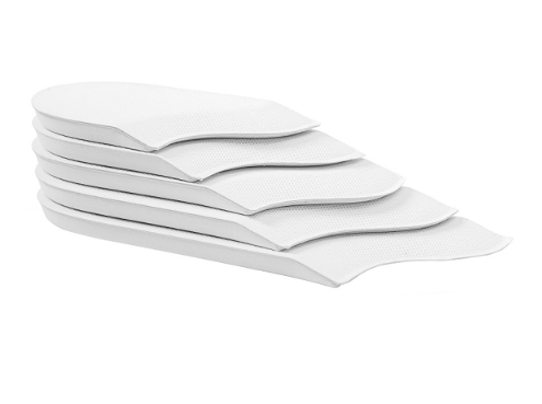 Zestaw składa się z kilku niezależnych elementów, dlatego pozwala na stopniową zmianę wysokości uniesienia pięty. Dzięki temu użytkownik może dopasować poziom odciążenia do aktualnego etapu leczenia. Jednocześnie stopniowe usuwanie podpiętek umożliwia kontrolowane rozciąganie ścięgna Achillesa.