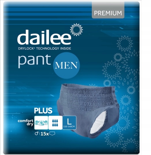 Majtki chłonne Dailee Pant Premium Plus Men sprawdzają się u mężczyzn z umiarkowanym nietrzymaniem moczu, którzy chcą prowadzić normalny tryb życia. Produkt łączy dyskrecję, wygodę oraz skuteczną ochronę, dlatego pozwala zachować pewność siebie w pracy, podczas spacerów i w kontaktach z innymi.