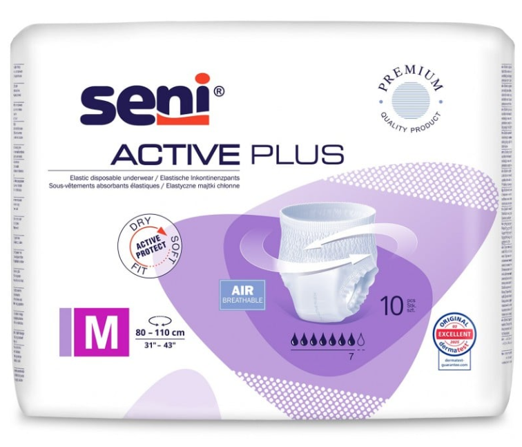 Majtki chłonne Seni Active Plus zostały stworzone dla osób aktywnych, które potrzebują skutecznej ochrony, ale nie chcą rezygnować z wygody. Produkt zakłada się jak zwykłą bieliznę, a jednocześnie oferuje chłonność i dyskrecję, co pozwala czuć się swobodnie nawet w wymagających warunkach.