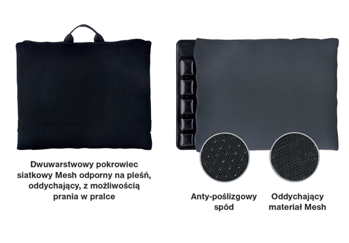 Dzięki tym funkcjom poduszka pozwala nie tylko zapobiegać odleżynom, lecz także podnosi komfort codziennego siedzenia.