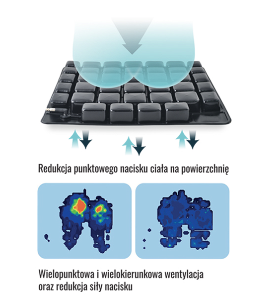 Dzięki możliwości regulacji twardości i konstrukcji wielokomorowej, produkt może być używany jako profilaktyka lub element wsparcia przy leczeniu wczesnych stadiów odleżyn.