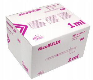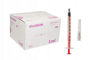 dicoSULIN strzykawka insulinowa 1 ml U-40 to wyrób medyczny, który umożliwia podawanie insuliny w sposób dokładny i bezpieczny. Skala co 2 IU (0,02 ml) pozwala na kontrolę najmniejszych dawek, a tym samym wspiera pacjentów wymagających precyzyjnego leczenia.