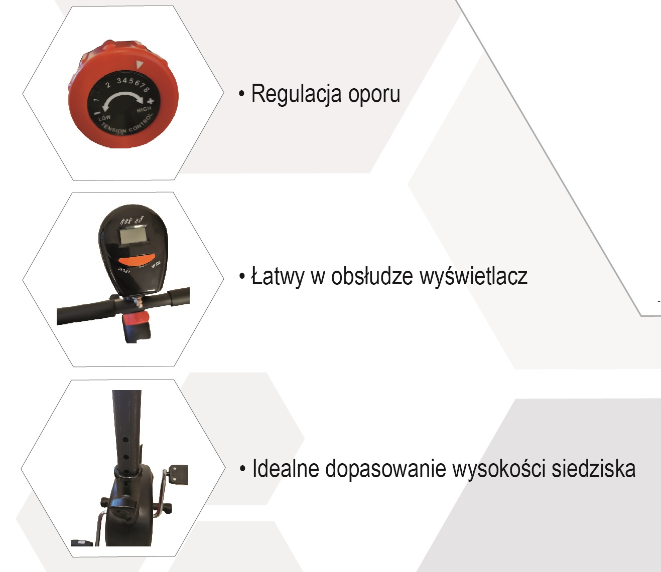 ☑️ 8 STOPNIOWA REGULACJA OPORU MAGNATYCZNEGO – pokrętło do zmiany oporu znajduje się tuż pod kierownicą, dzięki czemu można ąłtwo dostosowac opór podczas ćwiczeń