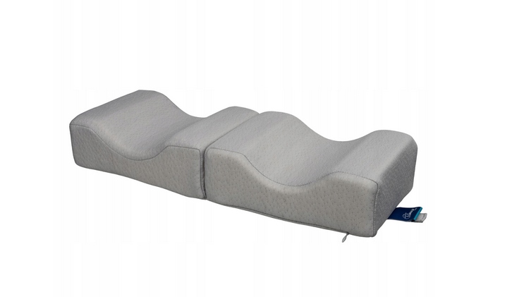 Przy wymiarach ok. 24 × 21 × 13 cm klin jest na tyle kompaktowy, że nie przeszkadza podczas snu, a jednocześnie wystarczająco duży, by skutecznie spełniać swoją funkcję ortopedyczną.