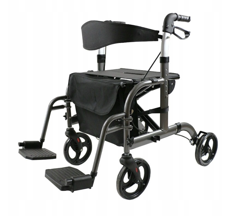 Model ten wyróżnia się funkcją transportową, dlatego może być wykorzystywany nie tylko jako chodzik, ale również jako wózek prowadzony przez opiekuna. To rozwiązanie znacząco zwiększa jego funkcjonalność i sprawdza się podczas dłuższych spacerów oraz wyjść poza dom.