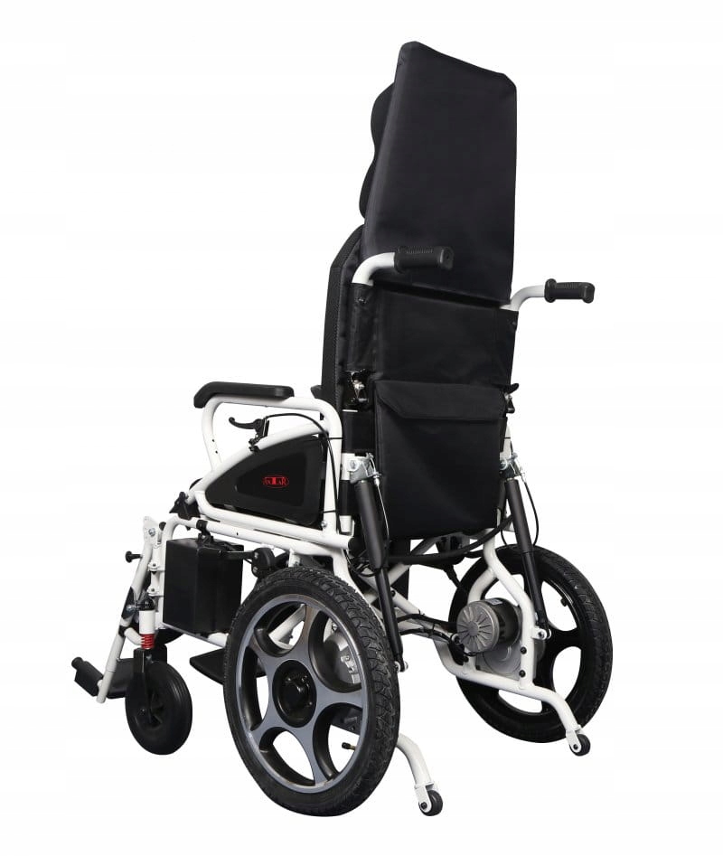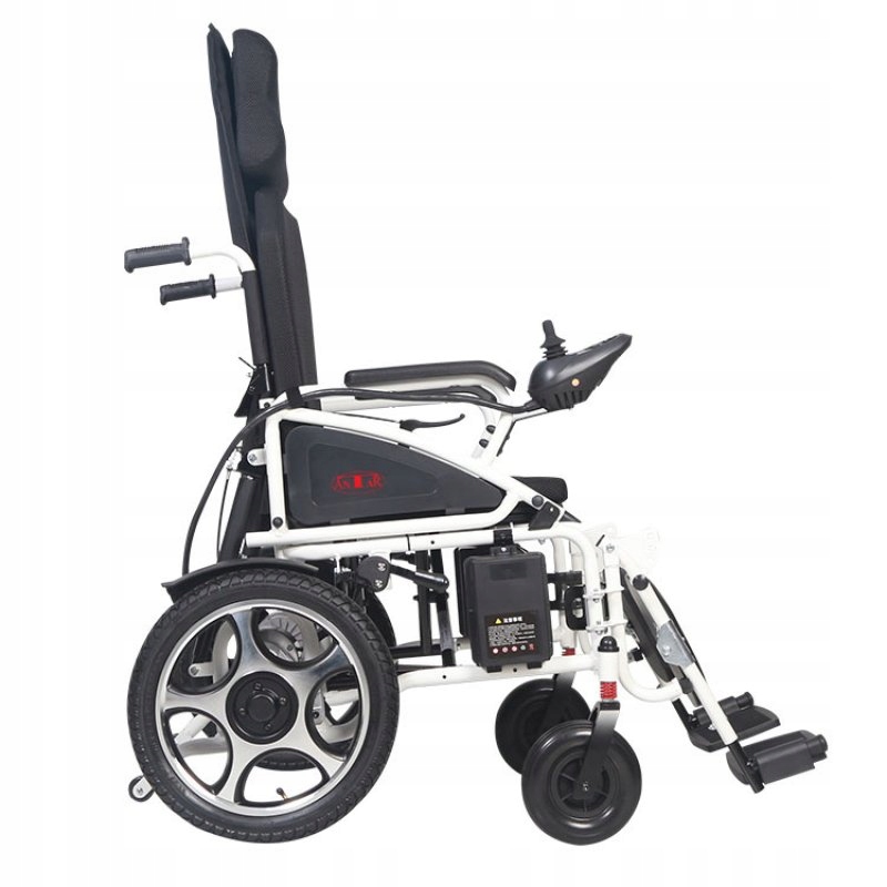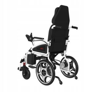 Konstrukcja wózka została zaprojektowana z myślą o komforcie i bezpieczeństwie. Model wyposażono w wysokie oparcie oraz zagłówek, które wspierają prawidłową pozycję ciała podczas jazdy. Jednocześnie miękkie siedzisko zwiększa wygodę, dlatego wózek sprawdza się nawet przy długotrwałym użytkowaniu.